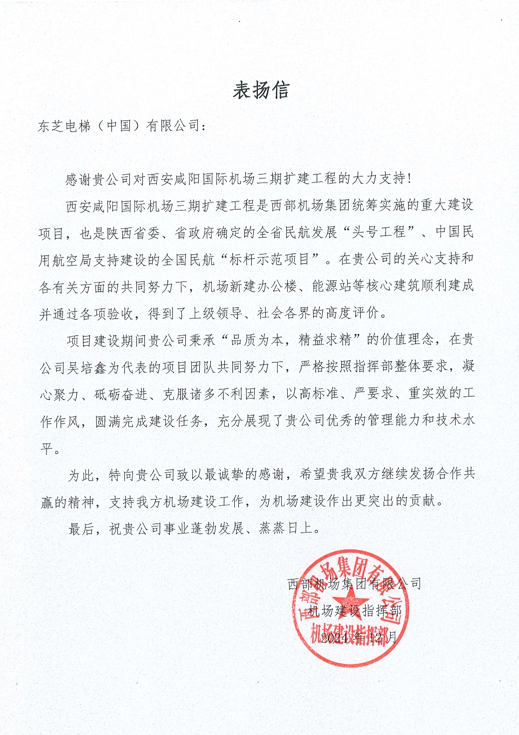 西安咸陽國際機場三期擴建工程電梯采購與安裝項目圓滿竣工
